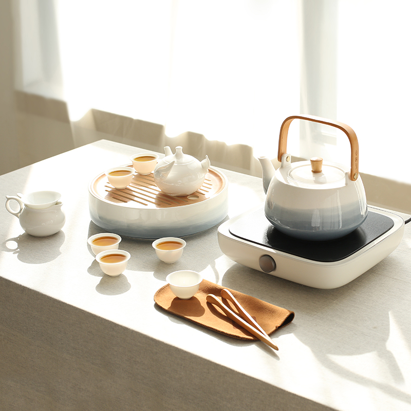 New Ceramic Tea Set Group Home Light Lavish Modern Black Crystal Stove Cooking Tea Set Office Delivery High-end Teapot