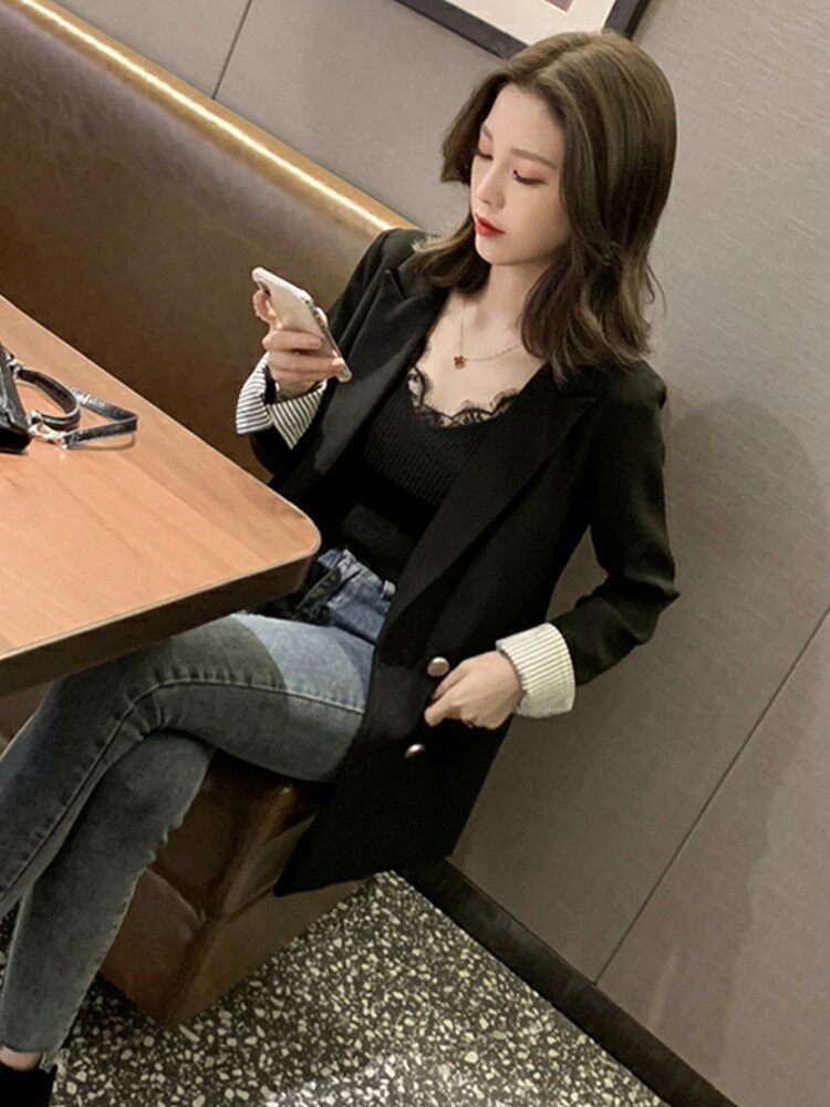 Internet celebrity fashion fried street casual suit jacket female 2022 new Korean version all-match high-end black suit jacket