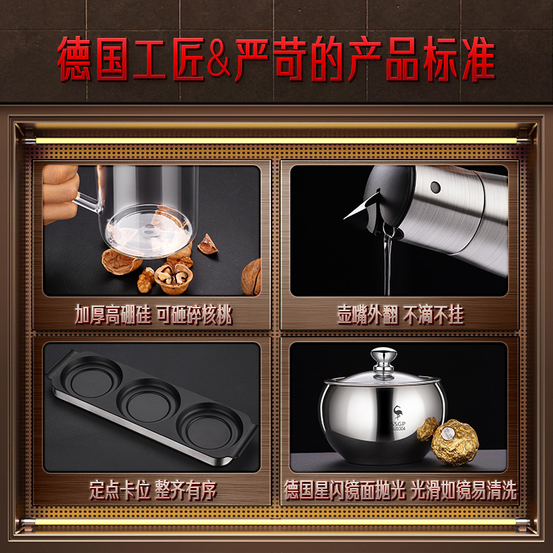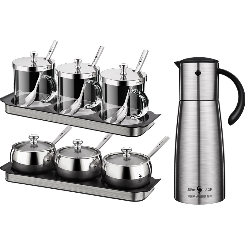Glass salt tank 3 pieces (single about 350ml) glass salt tank 3 pieces full 304 steel oil pot * 1 glass salt tank 3 pieces of glass oil pot * 1 full steel salt tank 3 pieces (single