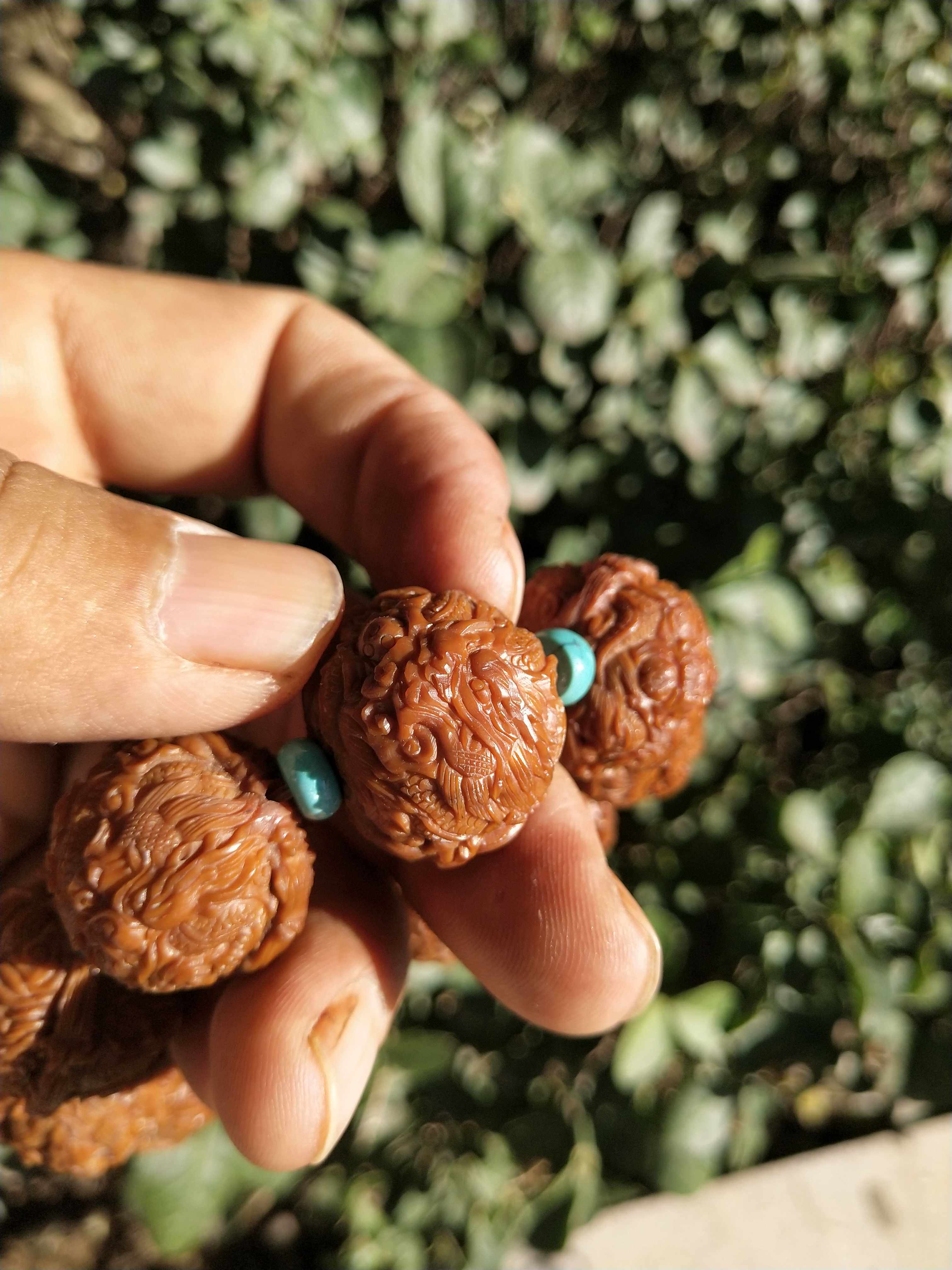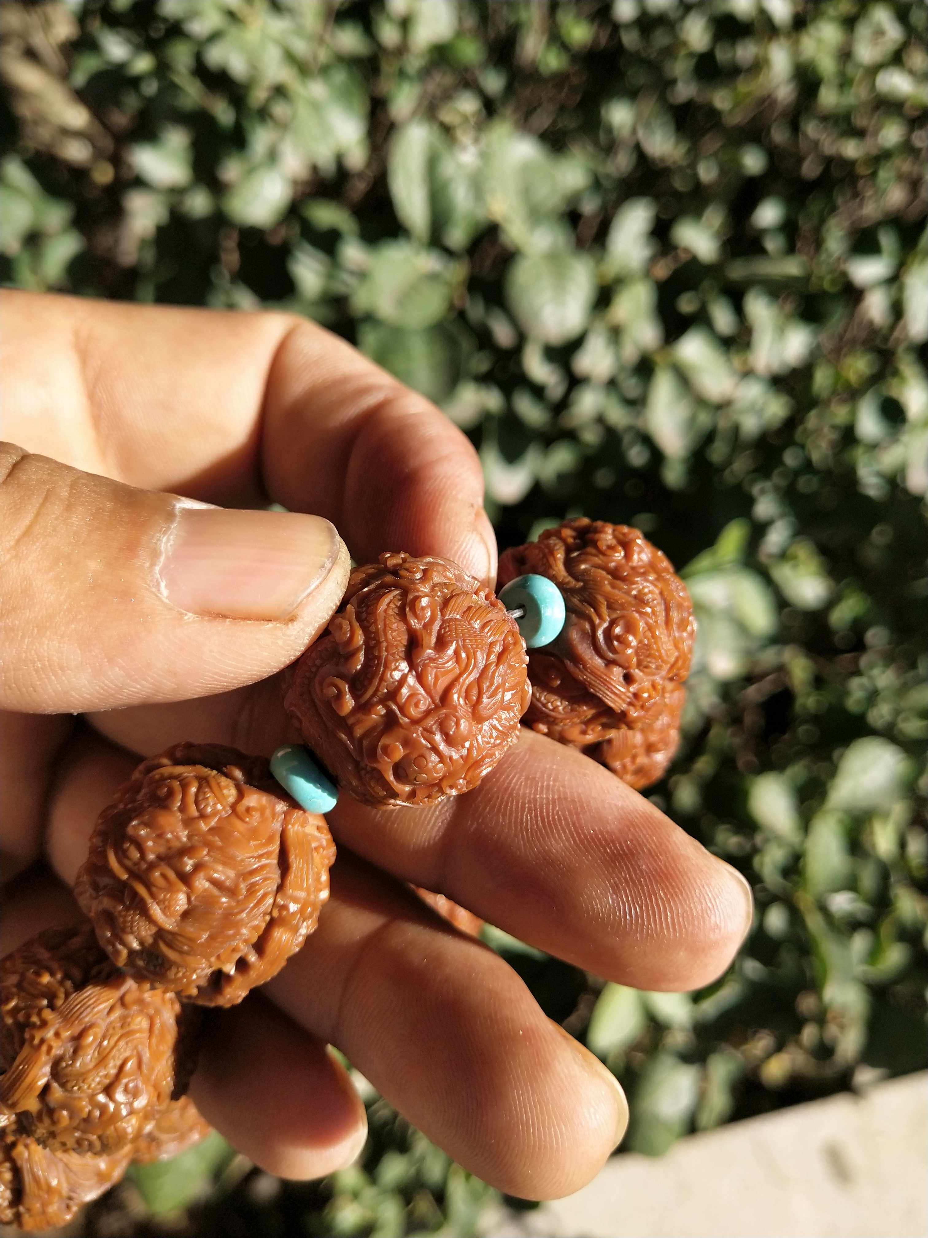 18 years of literature to play wild walnut handstring engraving Erong Opera Ball to play with walnut handlebar Lion Head Tiger Head Guan