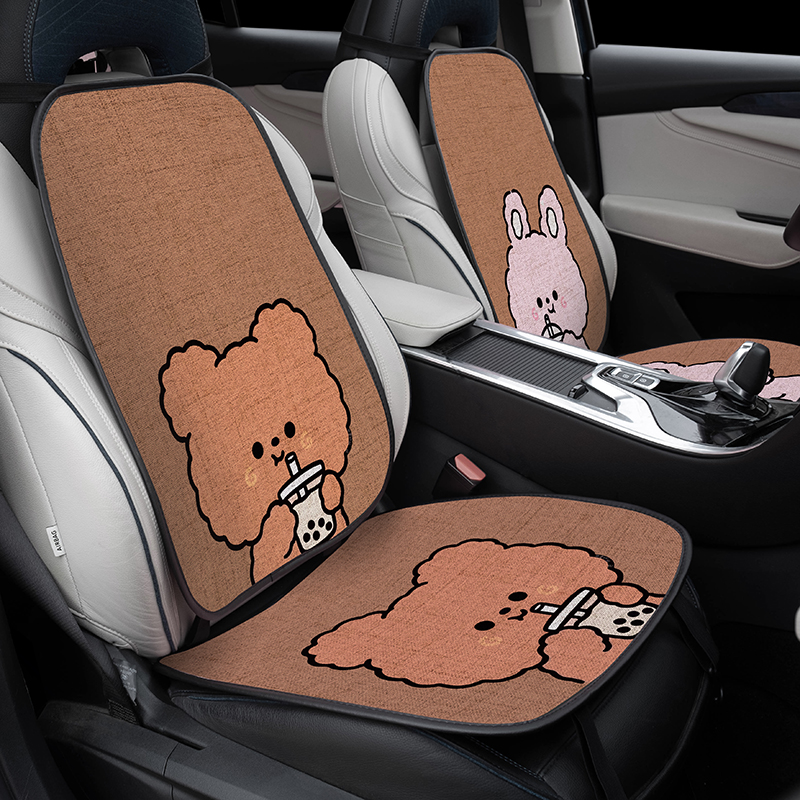 Automotive cushion single-piece summer cute bear couple linen mini car seat seat cover four seasons General