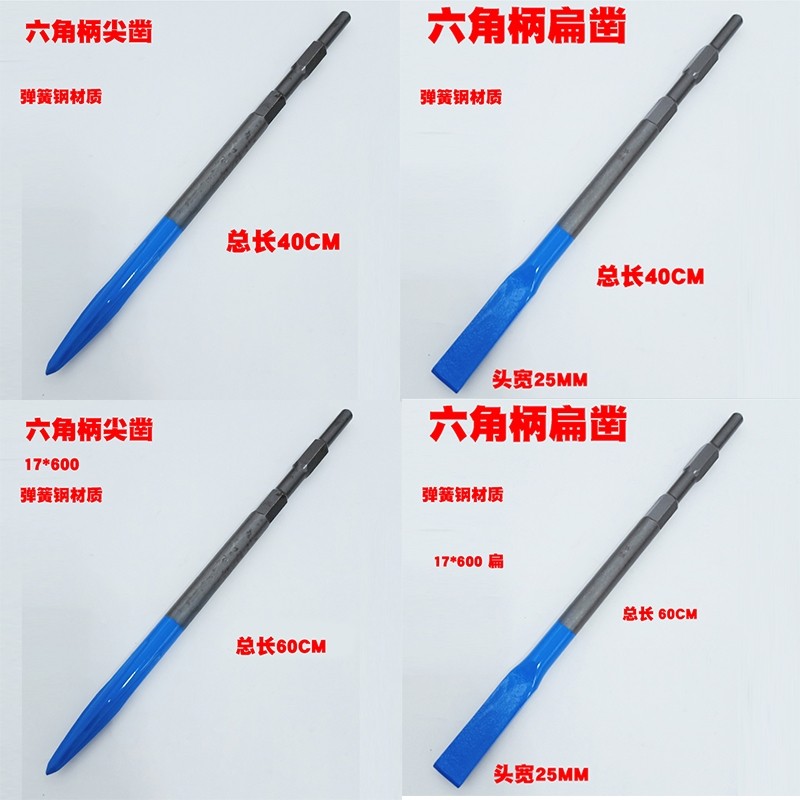 Spring steel electric pick head chisel bending electric hammer drill square handle tip flat pick Cracked Wall Breaking Wall widening lengthened