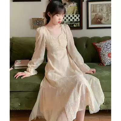 Elegant Pearl fishtail skirt can salt sweet square collar dress early autumn 2021 New temperament thin women's skirt