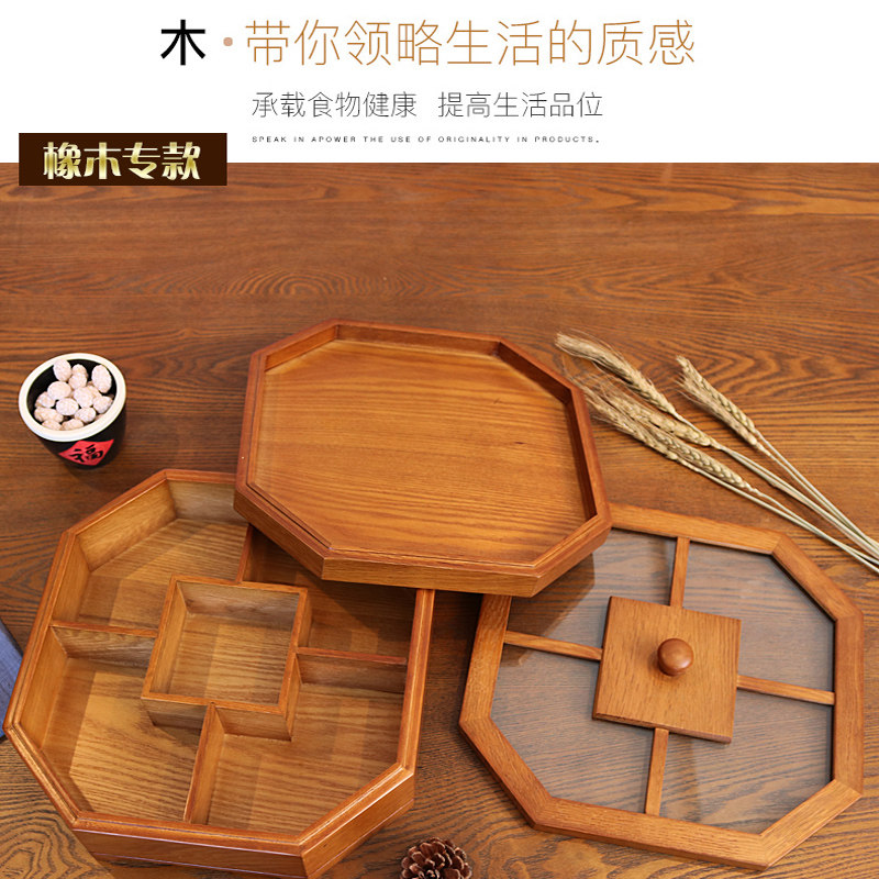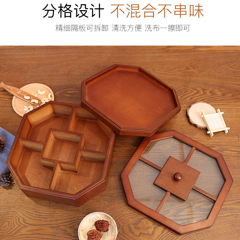 Solid wood fruit box New Chinese dried fruit candy box Living room Home Compartment with lid Lid Fruit Pan Snack containing box