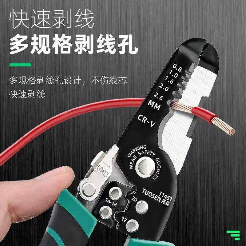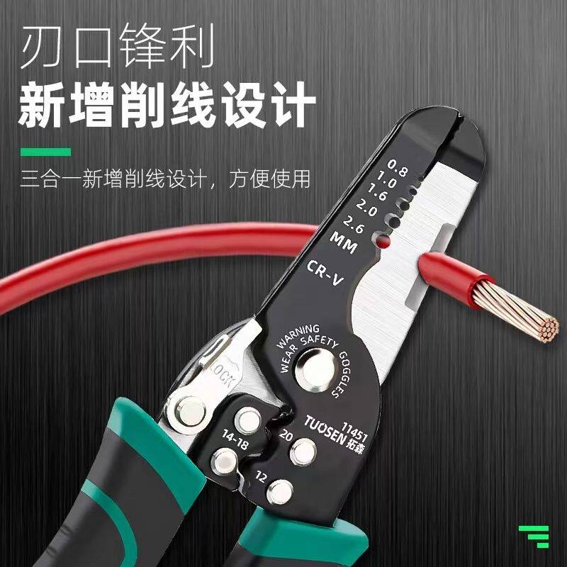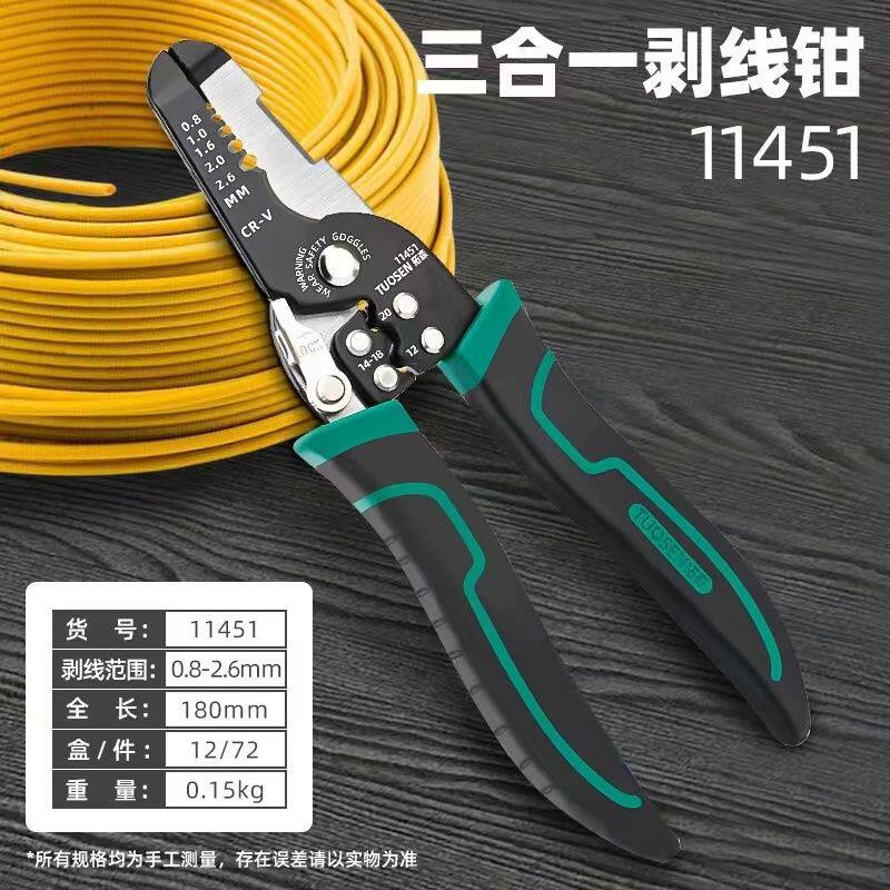 Tuosen three-in-one wire stripper multi-functional electrician special process crimping pliers small dial wire pliers industrial grade network wire pliers