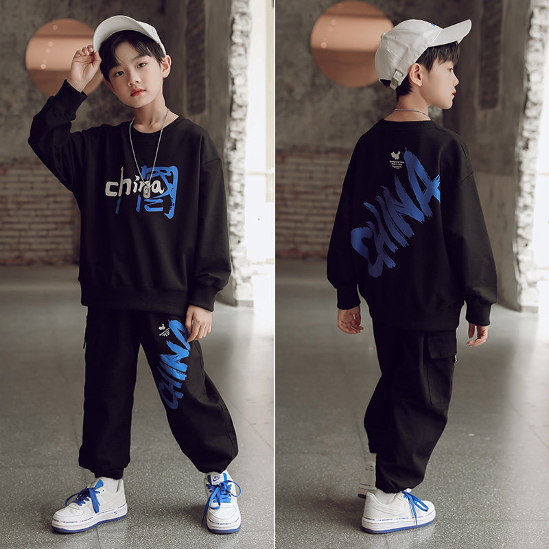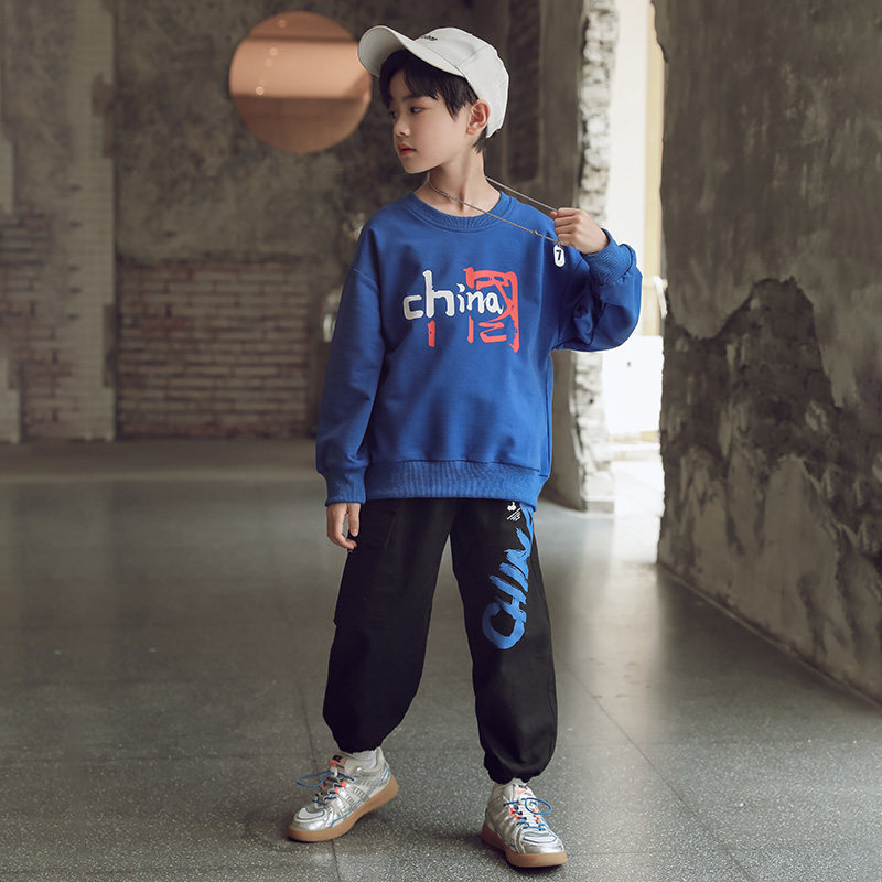 Boy Spring Clothing Suit Country Tide 2022 New Spring Autumn Season Children's Clothes CUHK Kids Sports Two Suits Handsome Gas Net Red
