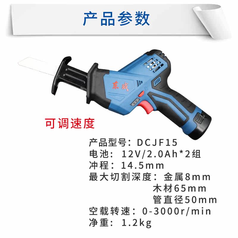 Dongcheng 12V rechargeable saber saw DCJF15E lithium electric reciprocating saw woodworking saw metal saw power tool