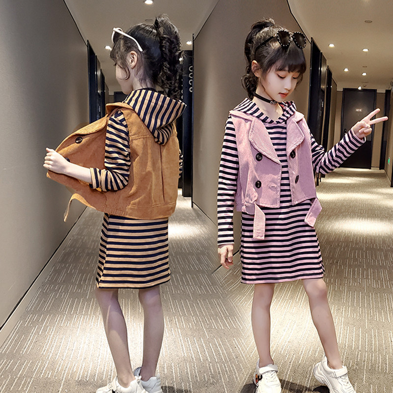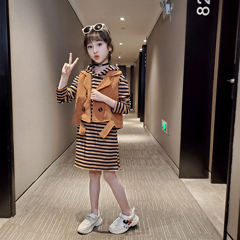 Girl dress 2021 New Girl spring and autumn vest princess dress two-piece foreign school children Net red skirt