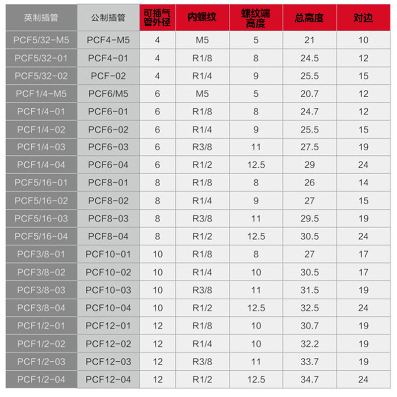 Delixi pneumatic internal threaded trachea quick plug connector PCF4-M5 6-01 8-02 10-03 12-04