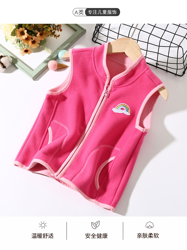 Girls' vest autumn and winter thickened baby vest children's polar fleece outerwear with zipper casual warm fleece vest