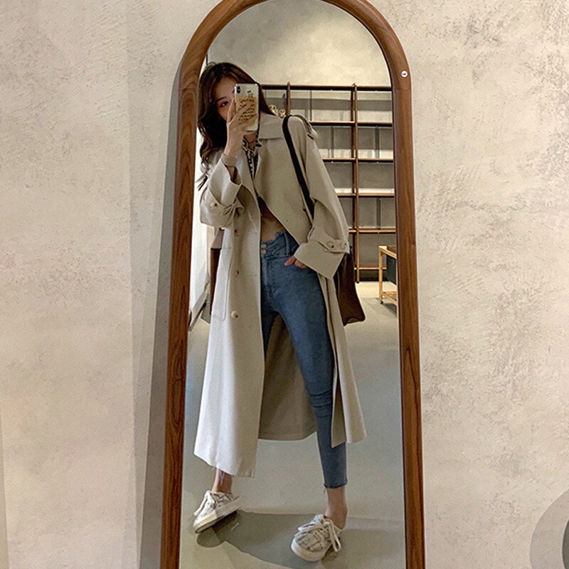 2021 New wind coat jacket female spring and autumn in the middle of the long version of this year's popular high-end great clothes senior sense Inn Wind