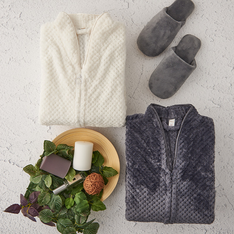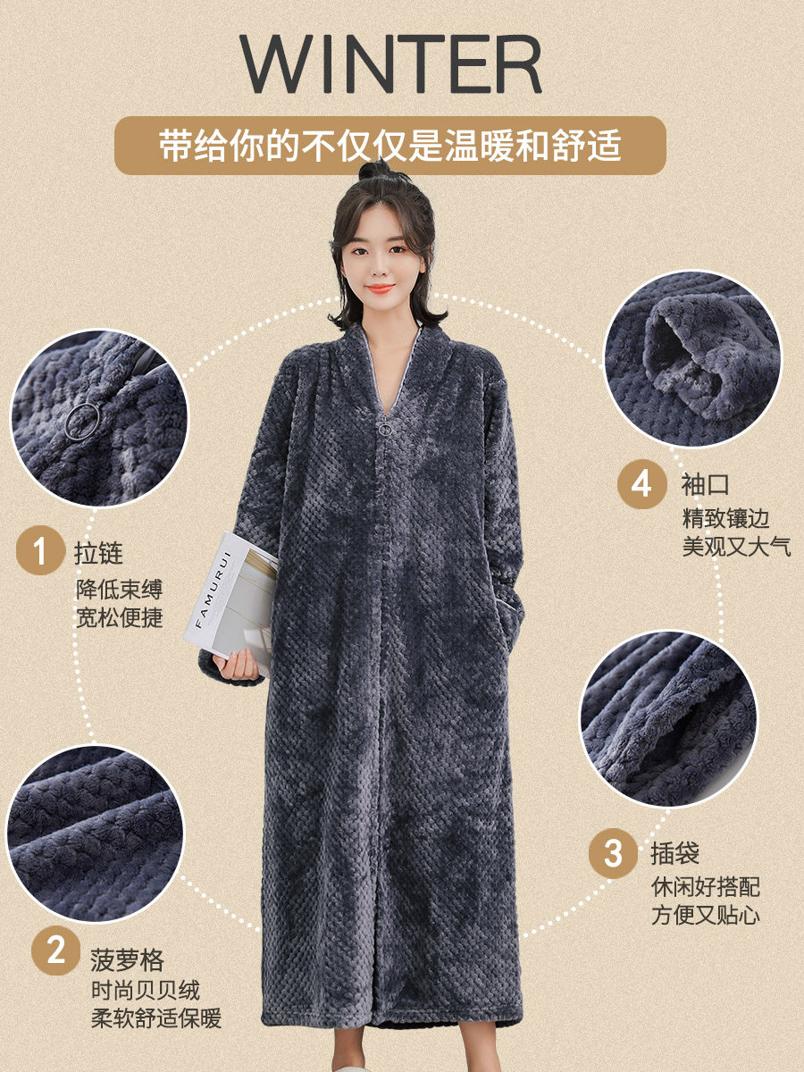 Winter coral velvet thickened long version of flannel hat zip sleepy dress can be worn outside