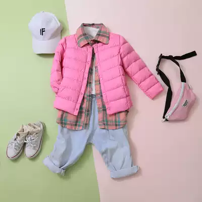 Children's light down jacket, inner round neck, children, boys and girls, children, autumn and winter clothing, short infant jacket