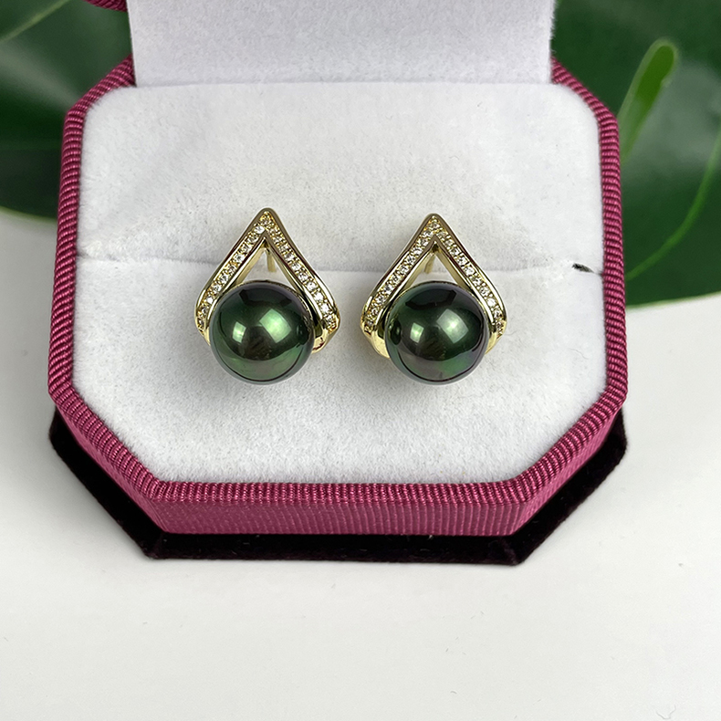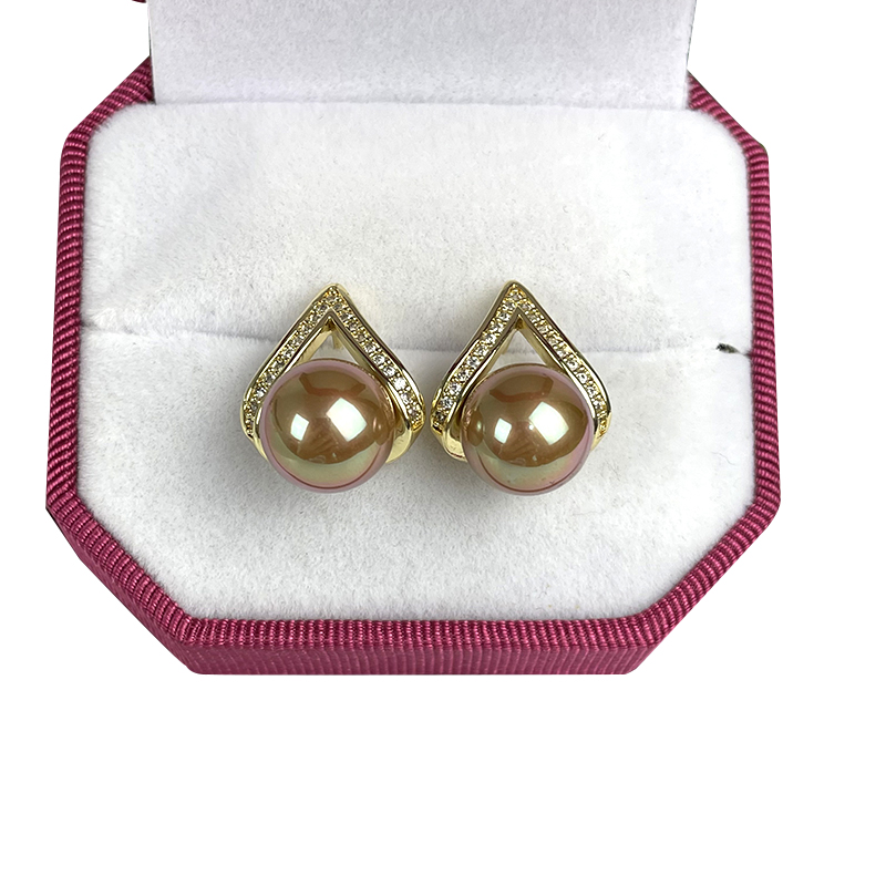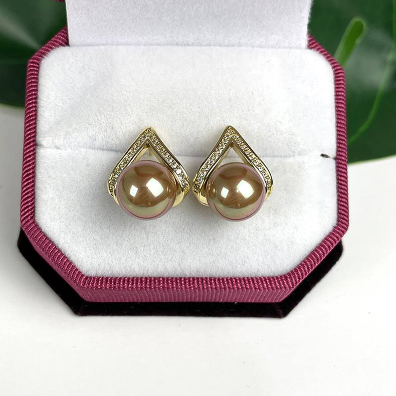 Diamond-studded moon heart 925 silver shell bead ear needle ear needle retro mother-of-pearl imitation pearl earring pendant white purple
