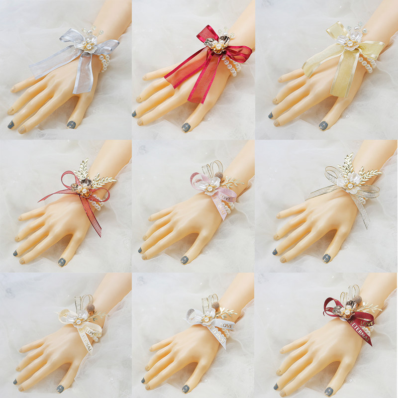 Wrist Flower Bridal Sisters Group Hand Flowers Pearl Flowers Han Style Small Freshener Ensemble Bridesmaid's Wrist Flower Show Knot Wedding-Taobao