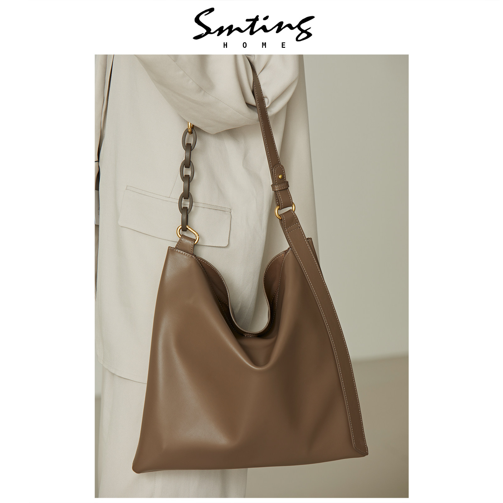 (Simutine) at first sight at the sight of the cow leather handbag woman 2021 new wave single shoulder large capacity bag bag