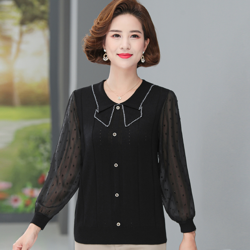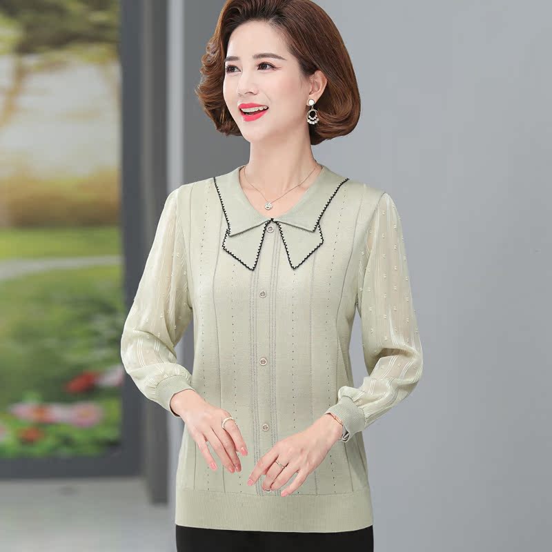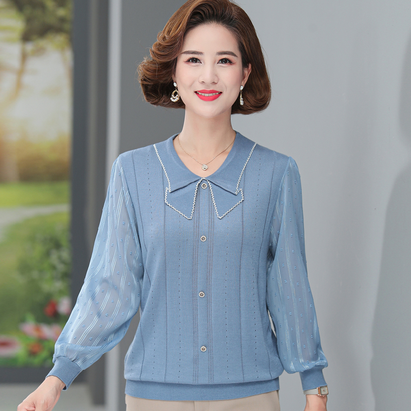 Fat Mom Spring and Autumn Fashion T-shirt Bottomless Shirt Foreign Pie Suit Middle-aged Gats Plus Size Fashion Blouse Women Thin