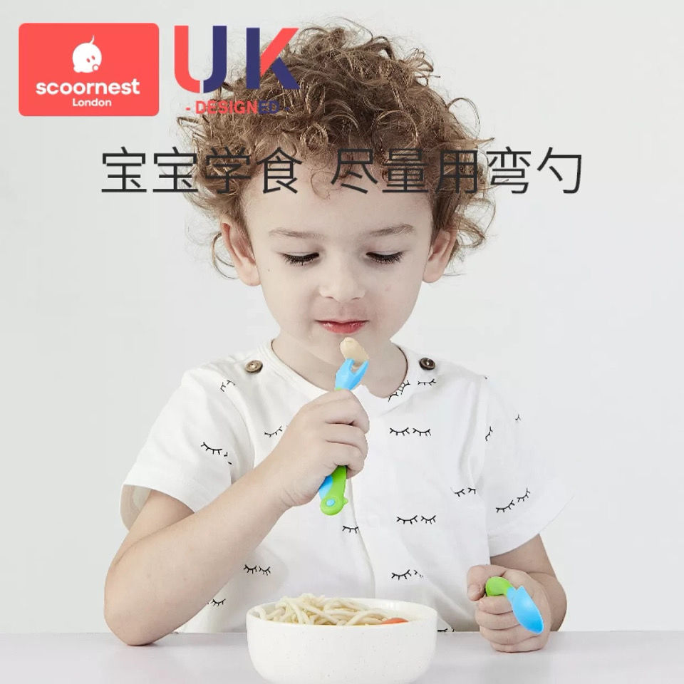 Baby Nest Learn to Food Training Spoon Baby Focus with Curved Spoon One Year Old Bending Children's Tableware Set