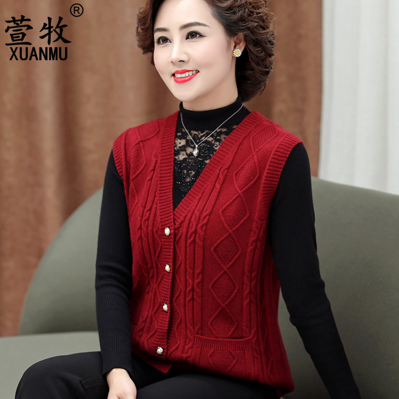 Middle-aged Margaret Lady Spring and Autumn coat Mommy dress vest outside wearing knitting short shoulder sweater clamp