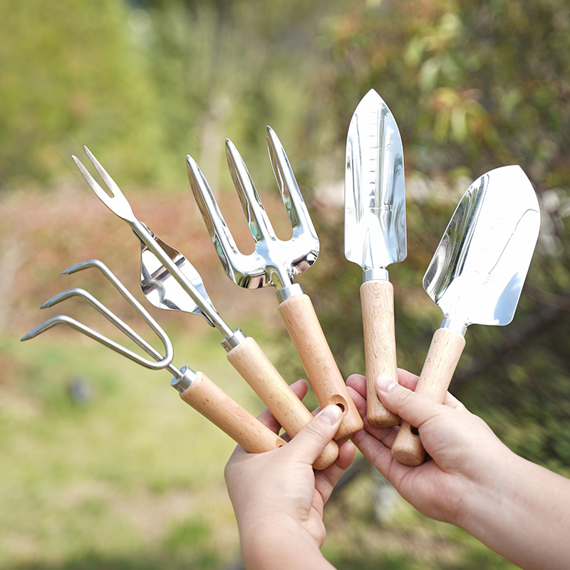 Thickened five-piece set (wide narrow shovel + three-prong rake + three-tooth shovel + lawn mower)