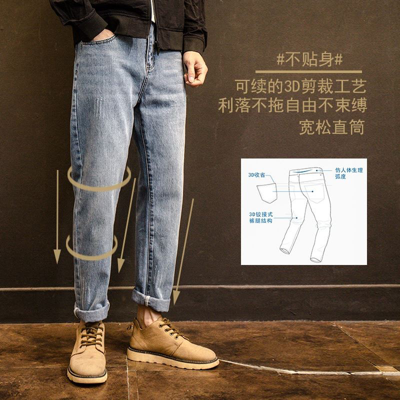 SyingLee jeans men's spring and summer trendy brand loose straight men's clothing versatile fashion micro-elastic men's casual pants