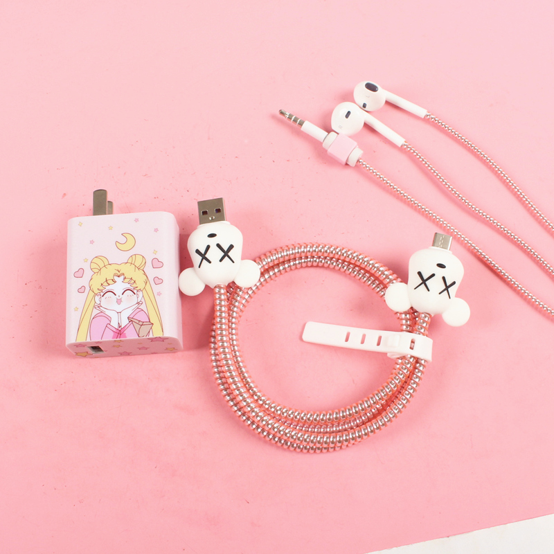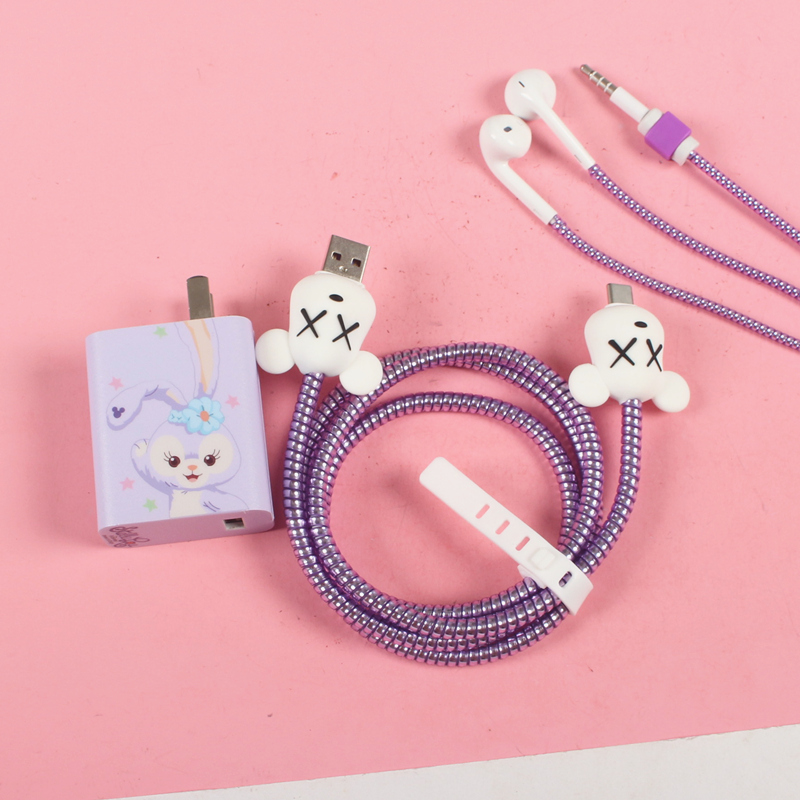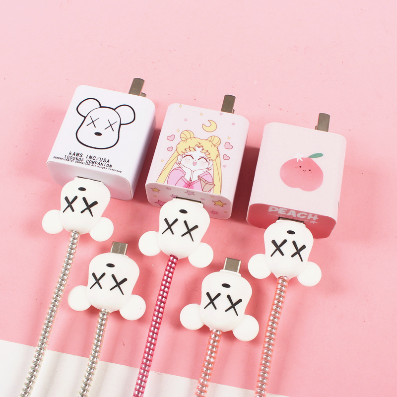Honor 60 Magic3 v40 p50pro x20 x30 mobile phone charger sticker data cable headset winding rope protector cartoon cute couple protective sleeve film set