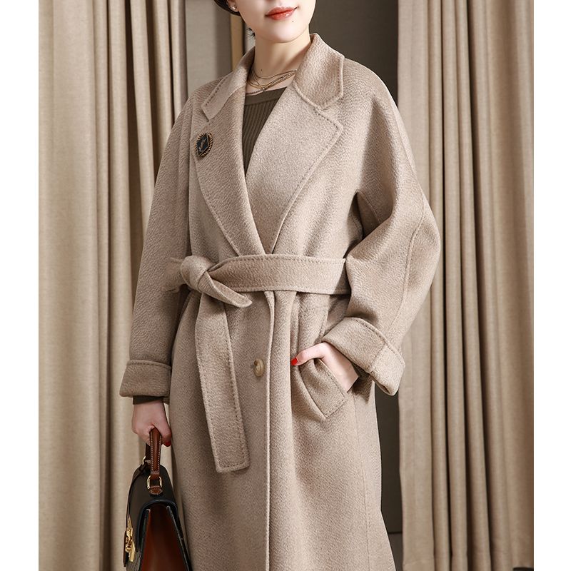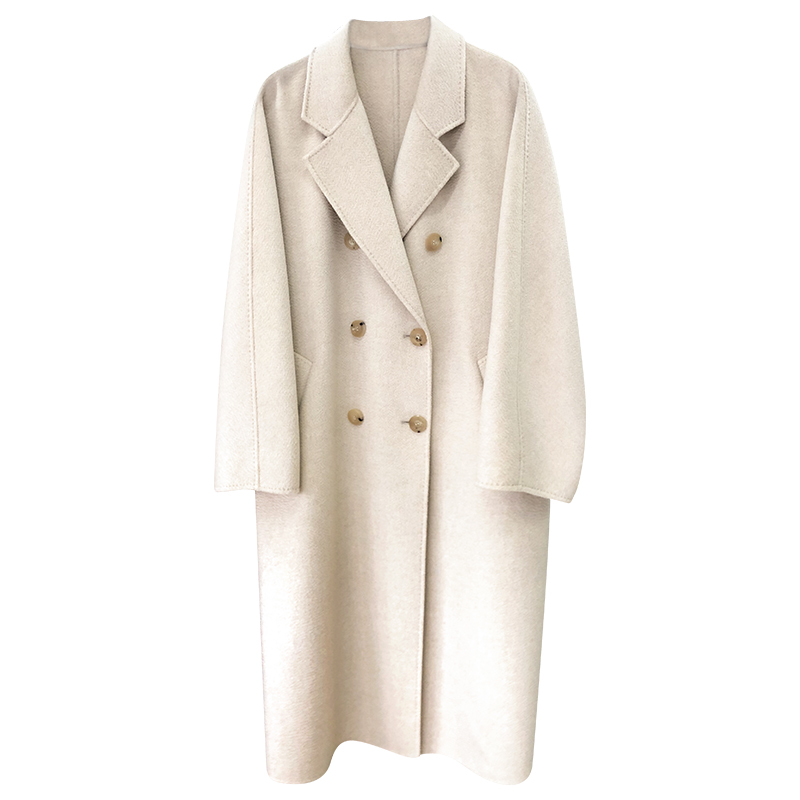NZ high-end big cards double-row buttoned water corrugated bifacial cashmere big coat woman medium long version pure kashmir wool coat 101801