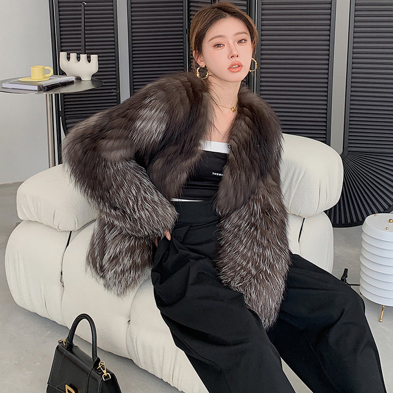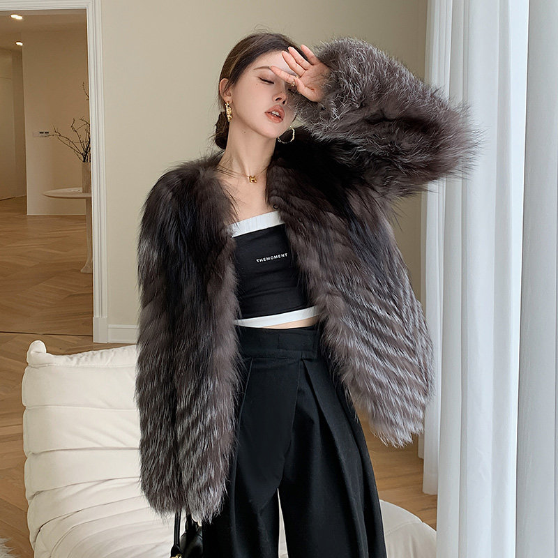 2022 autumn and winter new Finnish silver fox fur coat women's mid-length Haining young style fur coat