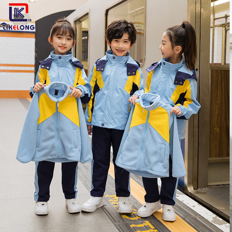 Elementary school students' school uniforms thickened cold-proof assault clothes can be removed three-piece kindergarten uniforms autumn and winter windbreaker class clothes