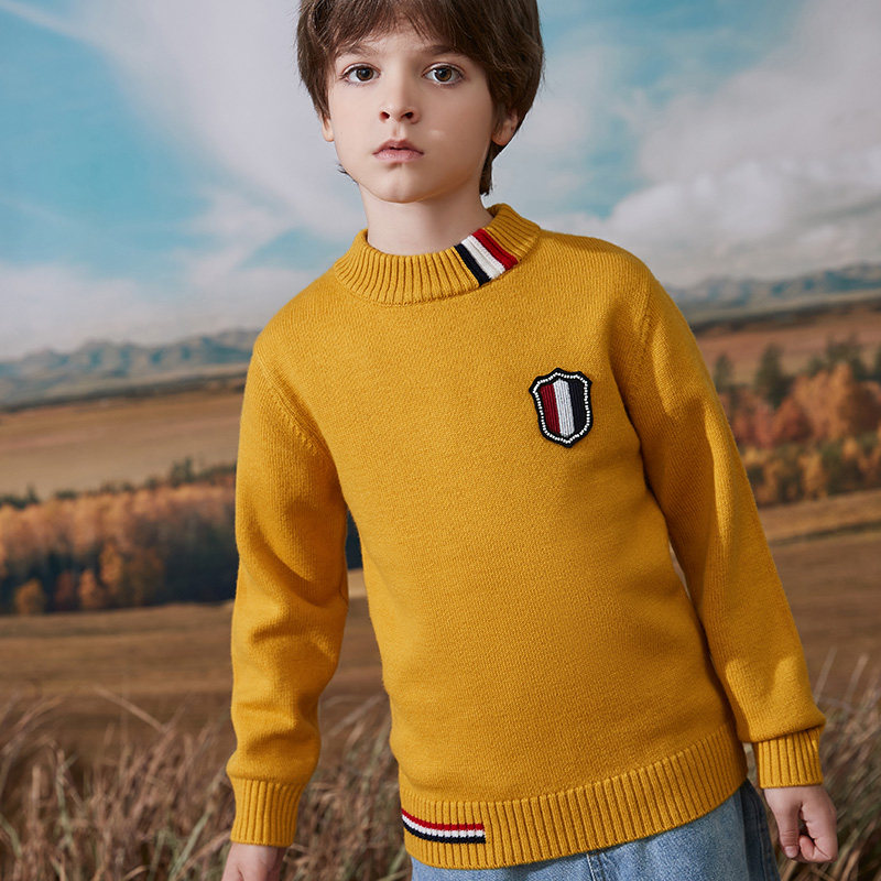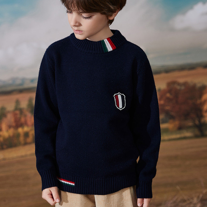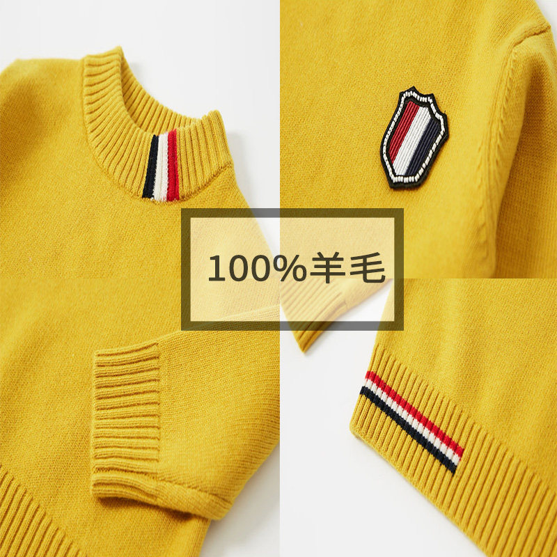 Boys' pure wool sweater autumn and winter children's sweater knitted bottoming shirt round neck pullover big children's liner warm top