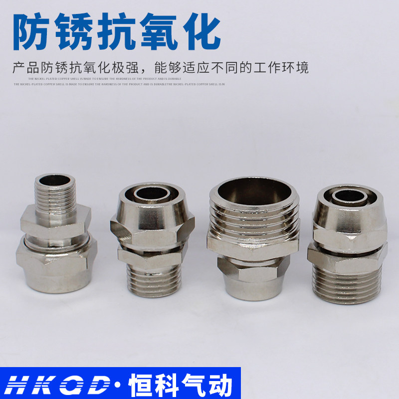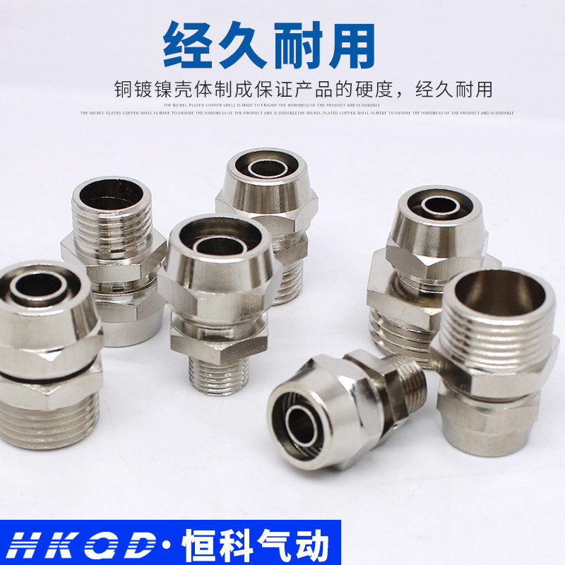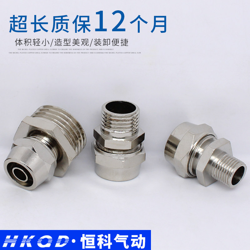 Pneumatic quick screw connector copper-plated nickel gas pipe quick connector PC threaded straight through locknut 6 8 10 12mm