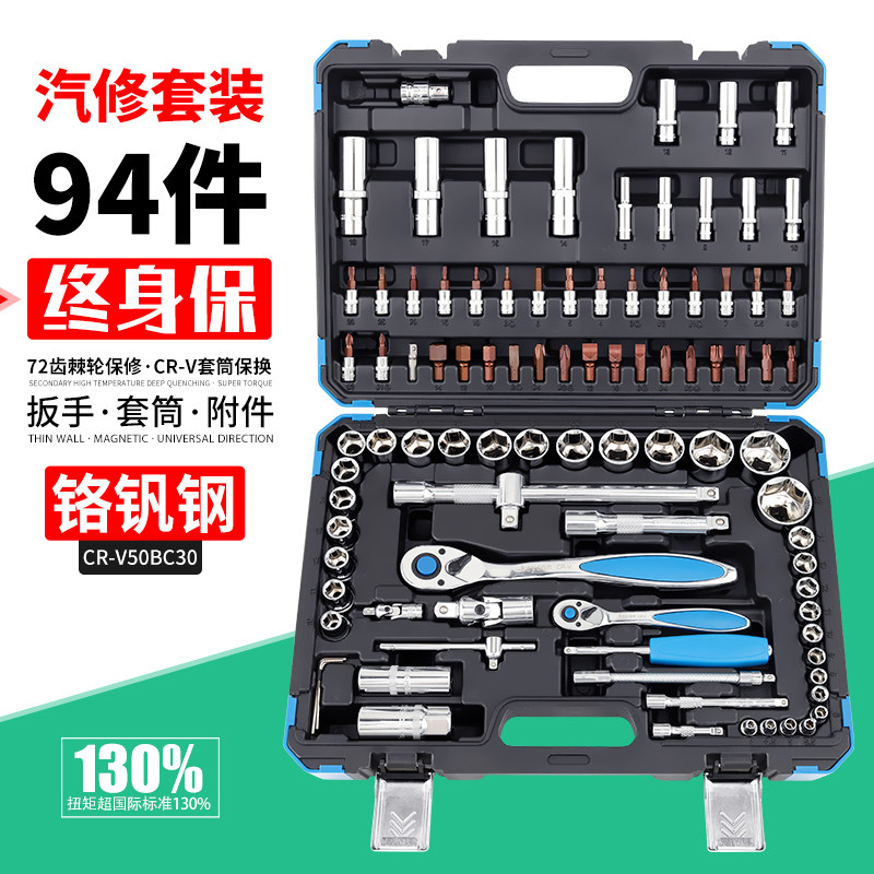 94-piece auto repair tool set quick ratchet wrench bit socket wrench set with car auto repair tool box