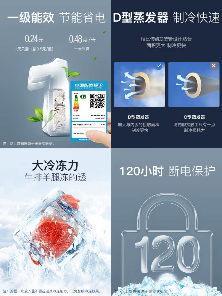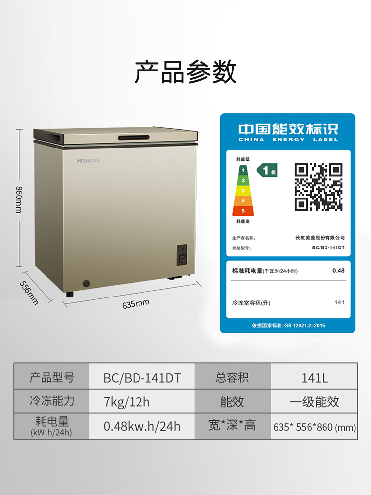 Meiling 141L household ultra-thin small freezer freezer horizontal energy-saving power-saving commercial household freezer