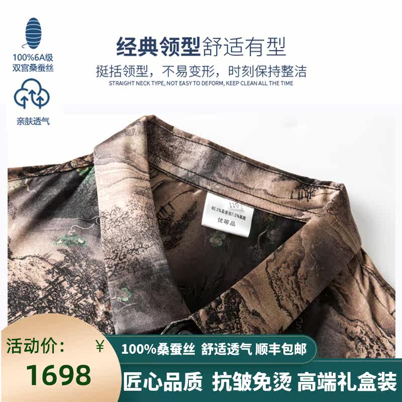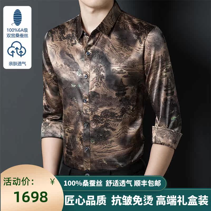 High sense mulberry silk long sleeve shirt male new Ordos prolific middle-aged design sense business real silk shirt
