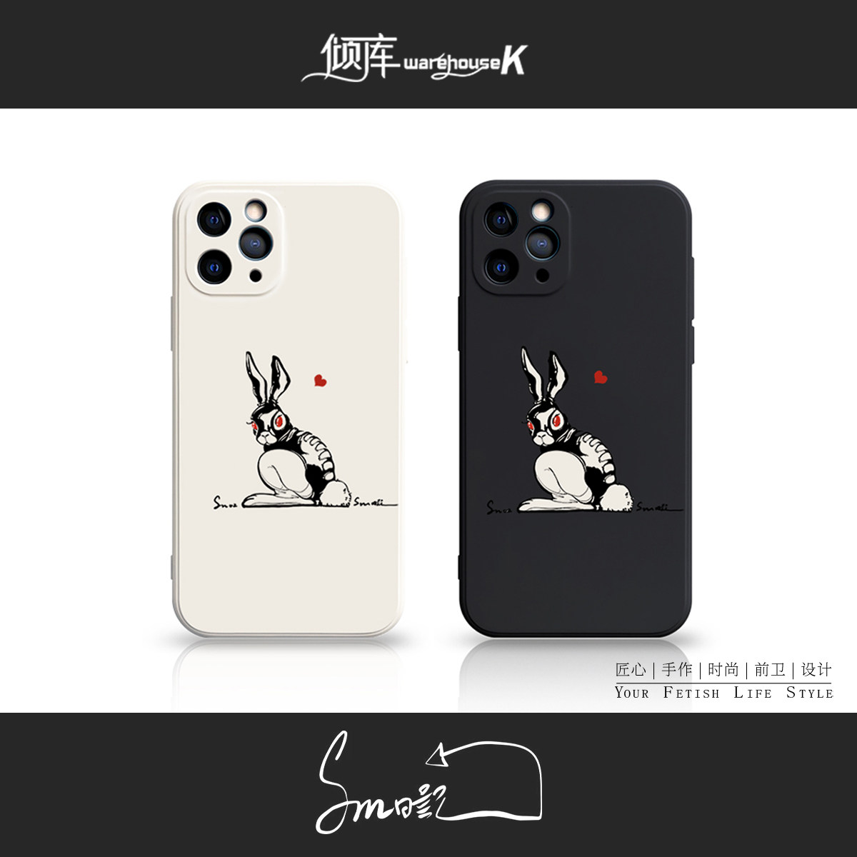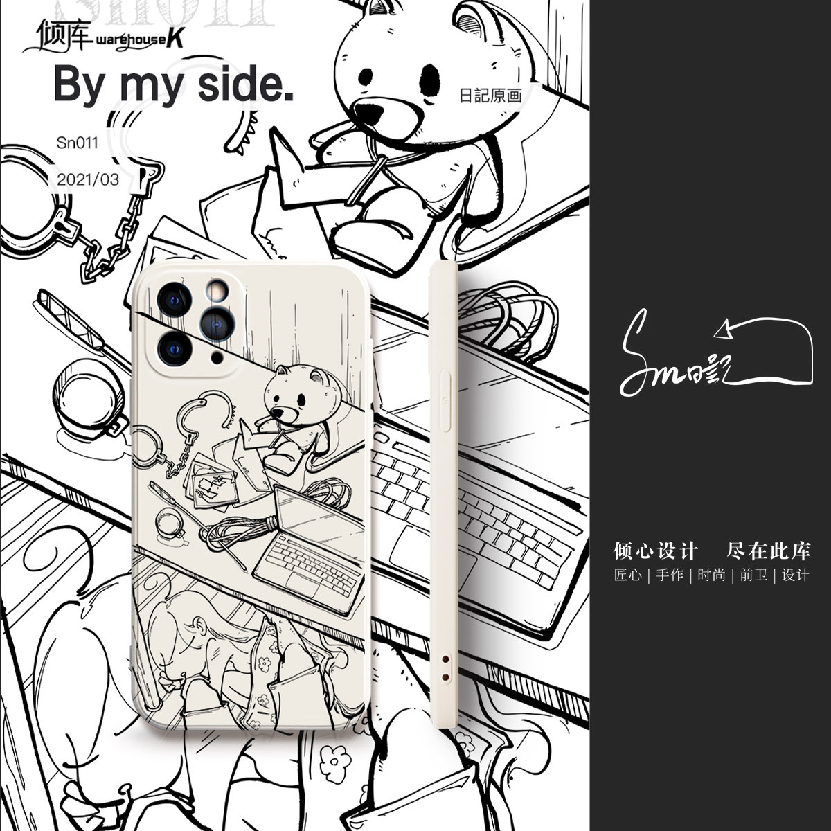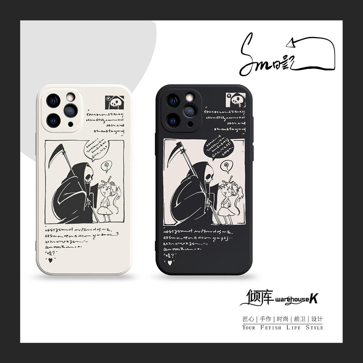 (WK dumping) sm diary's mobile phone protection shell update in original small crowddrawing design black and white anti-fall