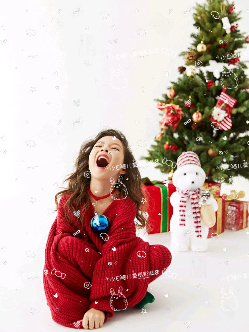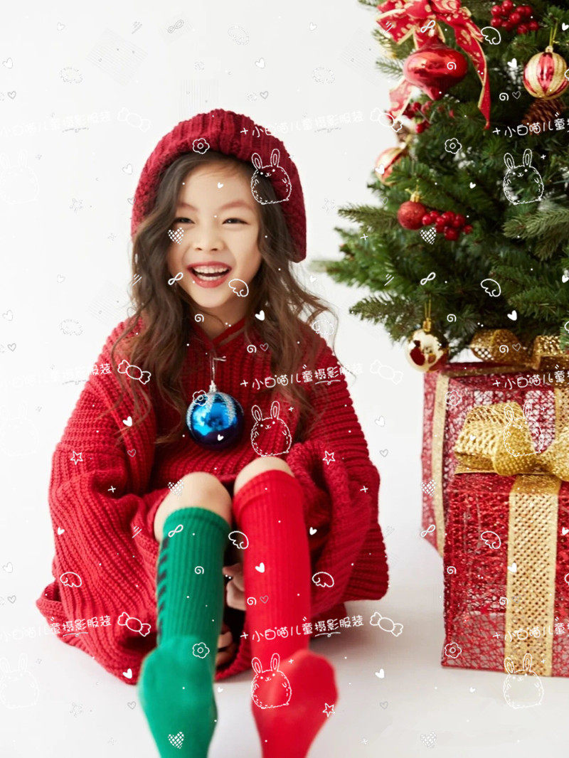 Girl red sweater individuality Write a true picture Children Christmas shooting Topic Costume Children Molka Magazines Cover