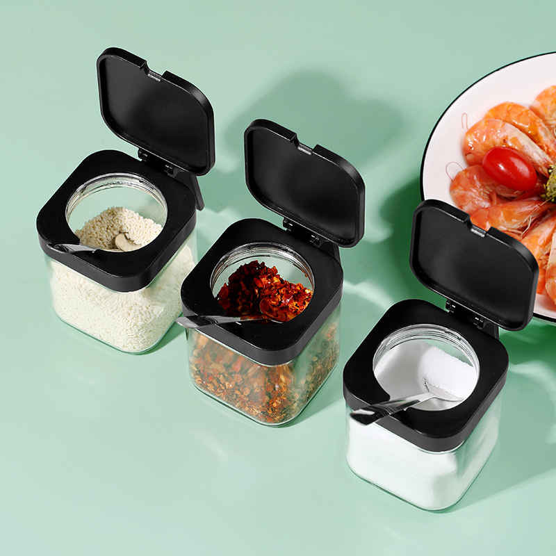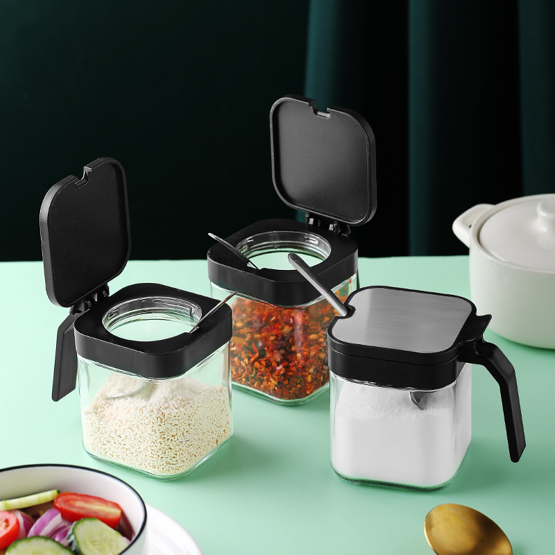 Nordic seasoning jar Three sets of seasoning jar glass salt jars with lid combined suit Home Kitchen MSG Containing box