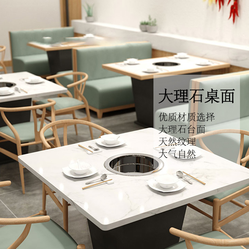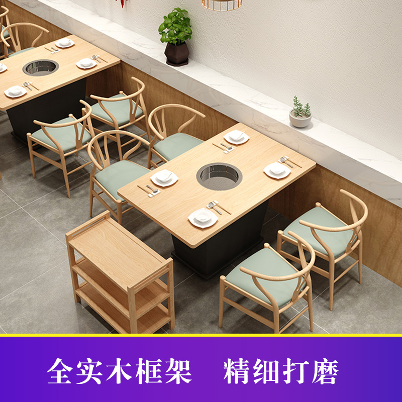Light and luxurious modern solid wood hotpot table induction cookery integrated commercial smoke-free baking marble round table One pot