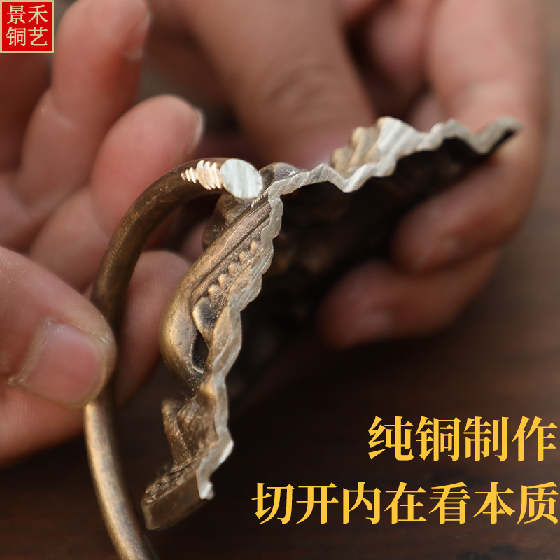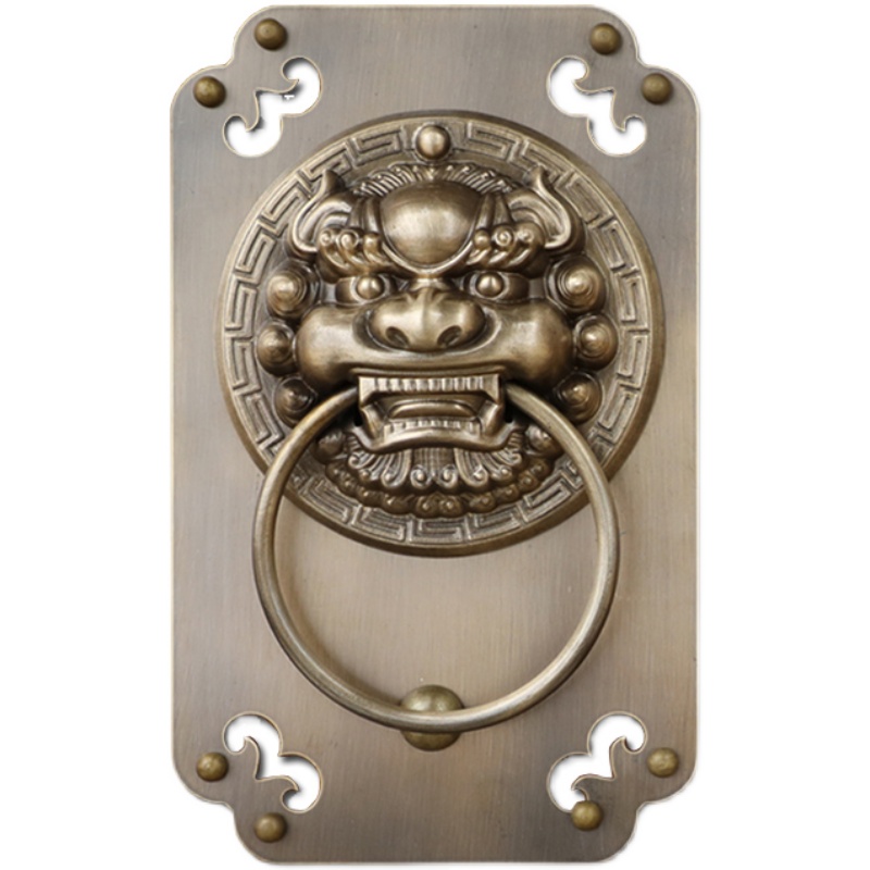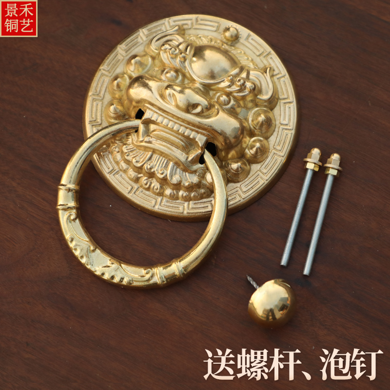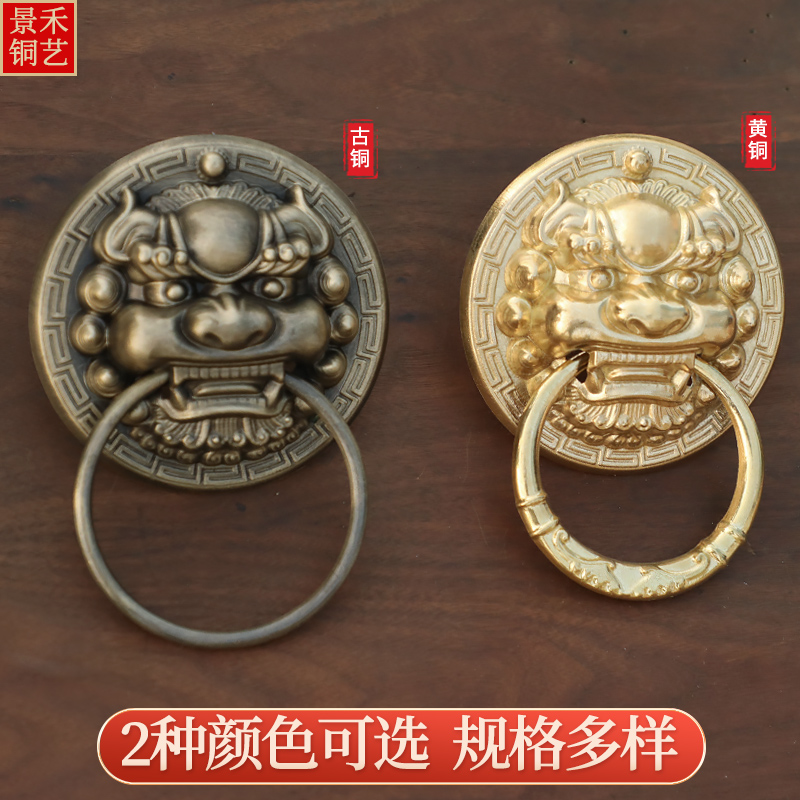 Antique pure copper animal head door knocker Chinese style lion head tiger head handle unicorn door handle retro wooden door small pull ring