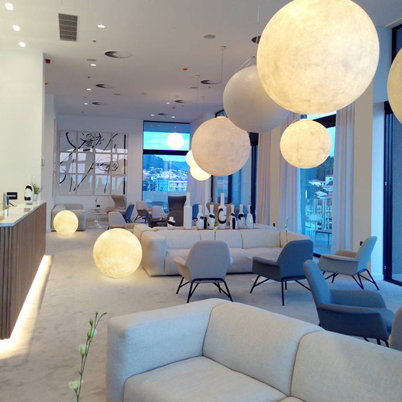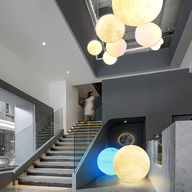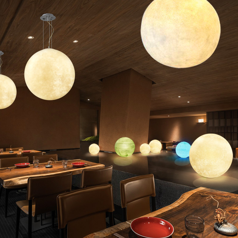 Tooling color moon chandelier resin oversized ball planet milk tea shop restaurant hotel net red living room moon lamp