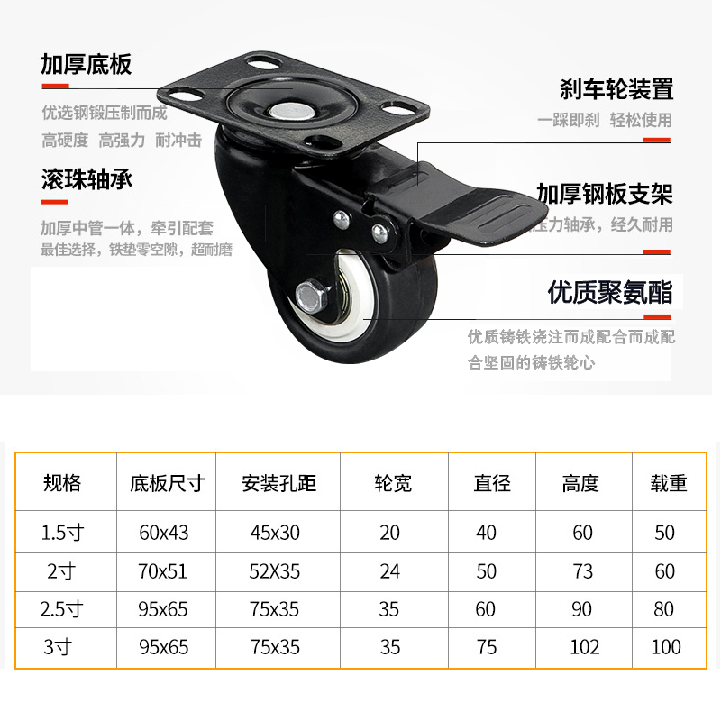 Universal wheel heavy-duty caster silent turn directional wheel 34 inch with shaft brake trolley trolley small trailer pulley