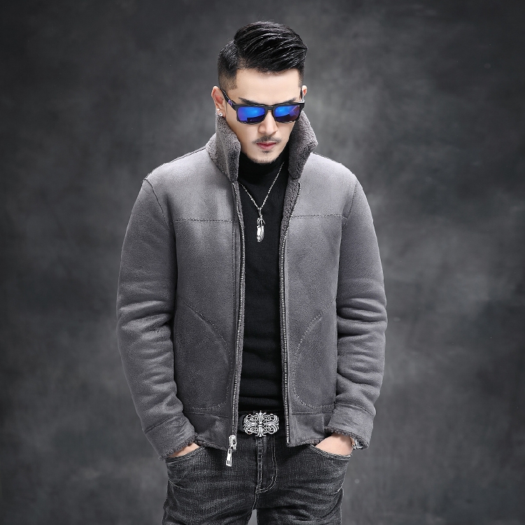 Large size men's sheep shearling autumn and winter plus fertilizer and grain wool coat fur all-in-one double-sided coat