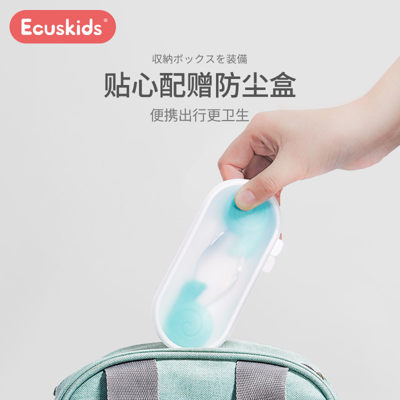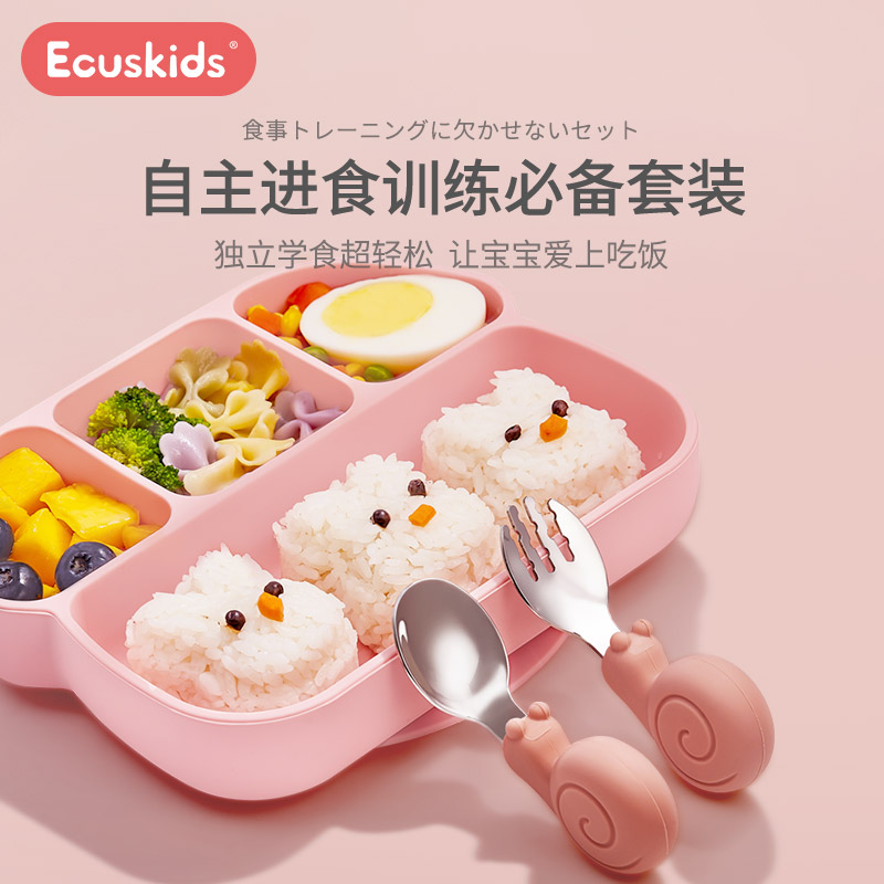 Japan Aikas baby baby children's non-staple food silicone fork spoon learn to eat short handle stainless steel training spoon set