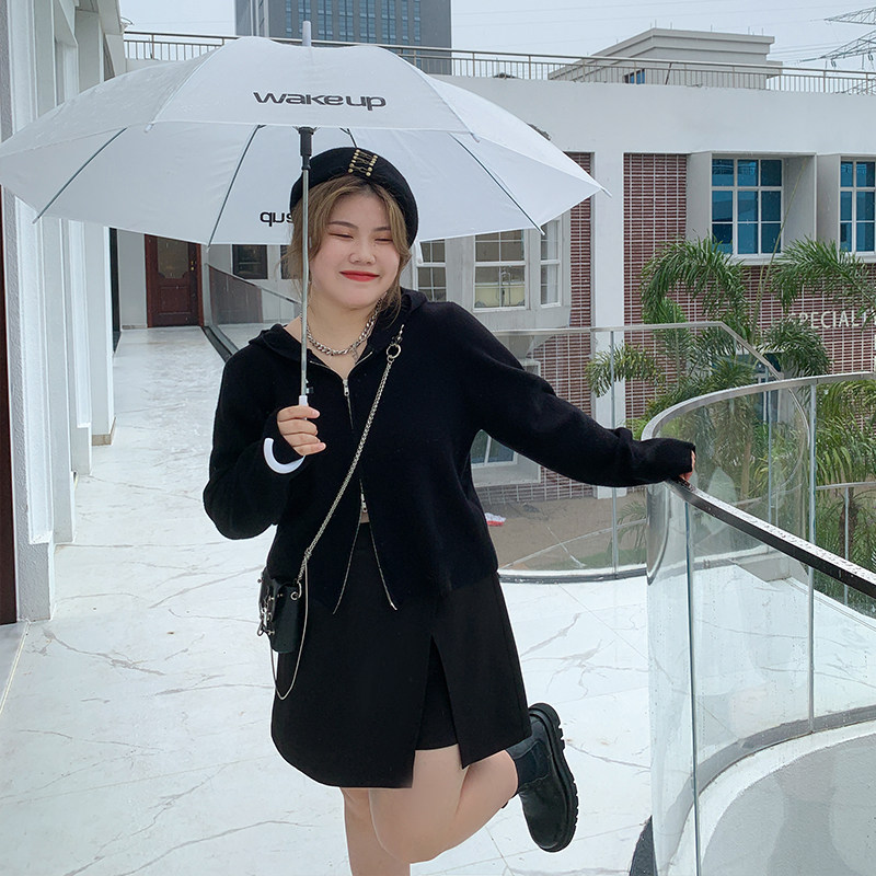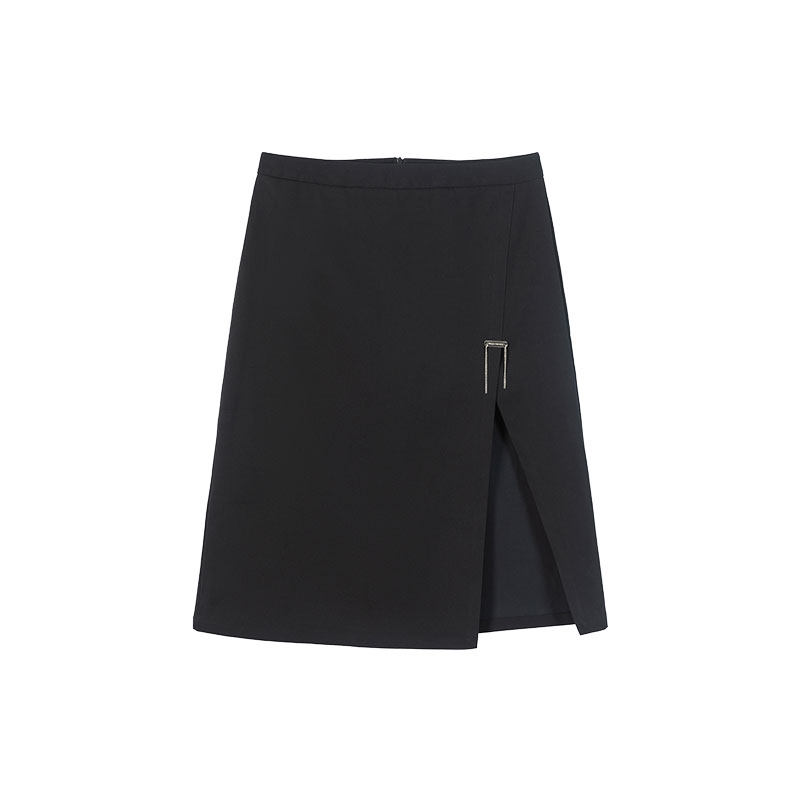 Kaka Don't eat the cool girl's taste Fall Black Metal Decorative High Waist Short Skirt Open Fork Half Skirt Long Dress