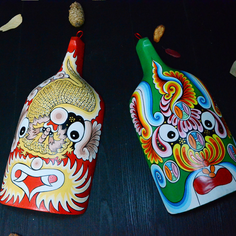 Folk handicraft Peking Opera club fire horse spoon facial makeup decoration pendant wooden shovel town house folk custom antique Chinese decoration