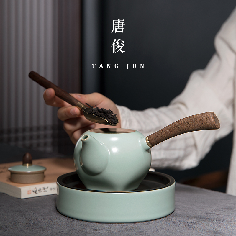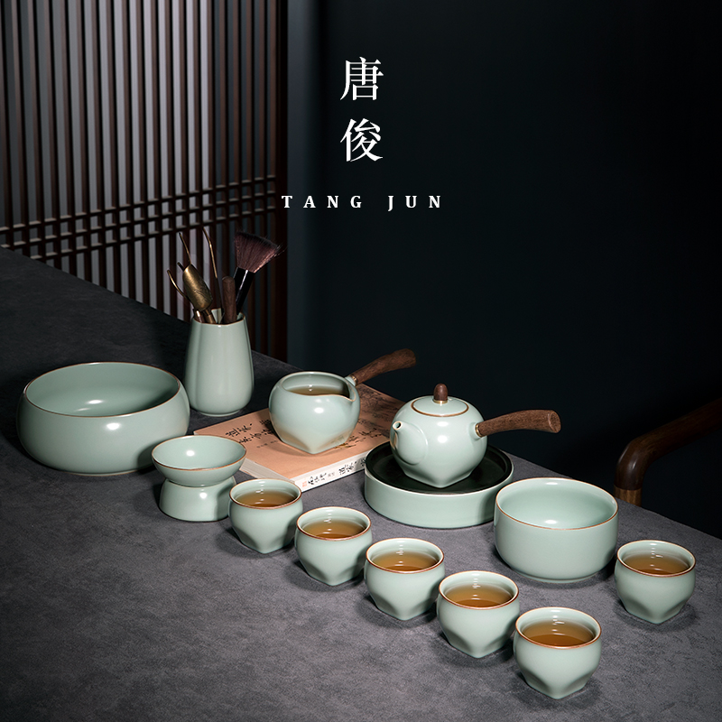Tang JunRu Kiln Kung fu Kung fu tea suit Home Japanese style tea cup side to make pot high-end office teapot high-end gift box-Taobao