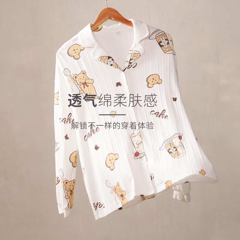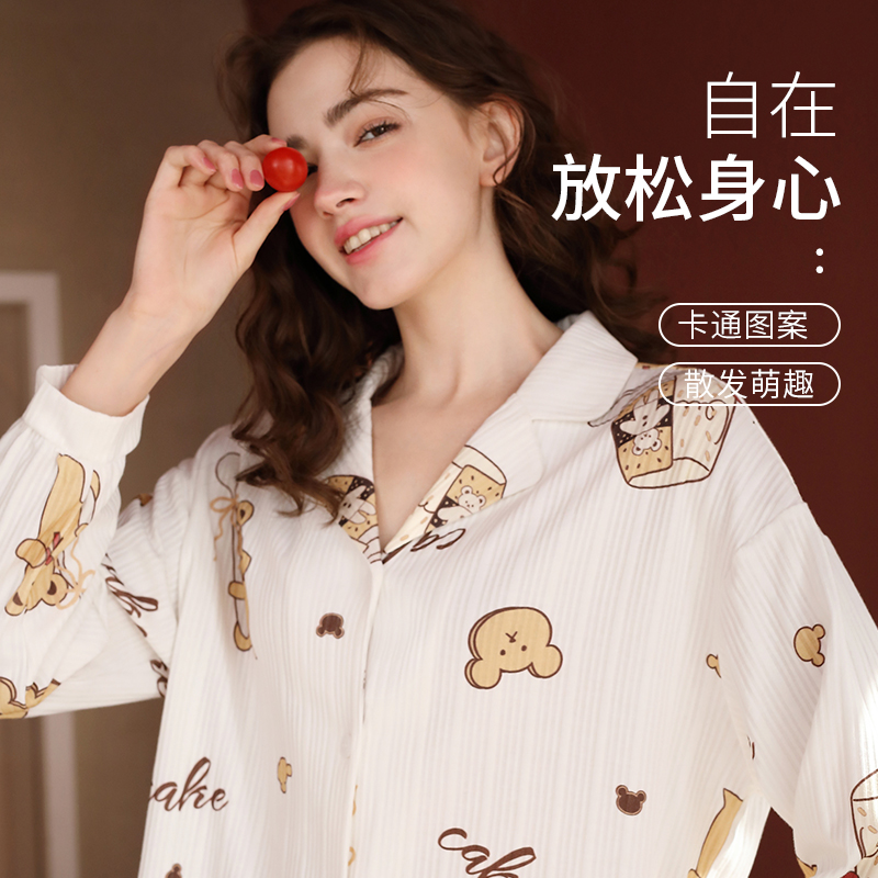 Fenteng pajamas women's autumn cotton long-sleeved trousers cardigan spring and autumn cartoon large size cotton homewear suit