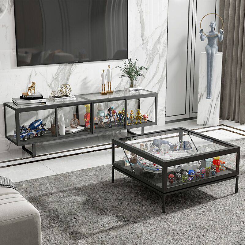 Nordic contained small household type tempered glass tea table model Coffee table Living room Multi-functional Lego Display cabinet