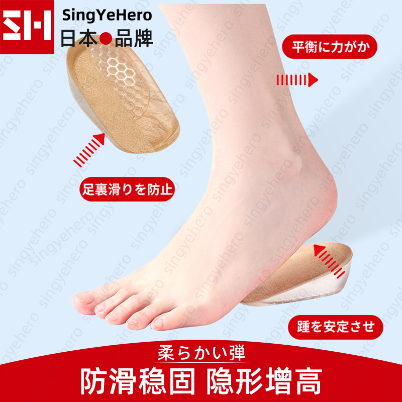 Japan's heightening insole female summer invisible silicone invisible male comfortable and not tired foot heightening pad artifact heel half pad