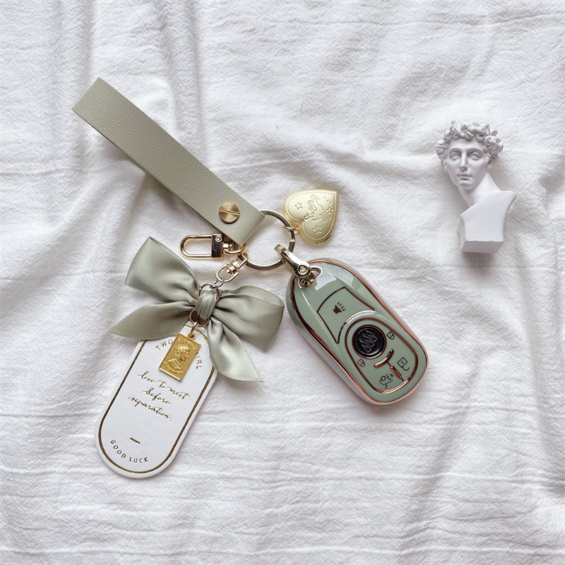Buick 5-key gold-edged light green shell-single protective cover, free horse iron buckle, screwdriver